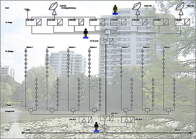 Nicht nur große Wohnungseigentümergemeinschaften, sondern auch Hotels, Krankenhäuser und Senioren-Wohnheime können mit einer zentralen Sat-Kanalaufbereitung eine „eigene Kabelfernsehanlage“ betreiben. Laufende Gebühren an Kabelnetzbetreiber fallen weg und die individuelle Programmvielfalt nimmt deutlich zu. Ein vorhandenes Hausverteilnetz in Baumstruktur kann in vielen Fällen erhalten bleiben. Überzeugende Argumente, um auf eine Sat-Kanalaufbereitung umzusteigen. Dies ist bereits bei Anlagen mittlerer Größe (ab 40 WE) eine sehr wirtschaftliche Alternative.